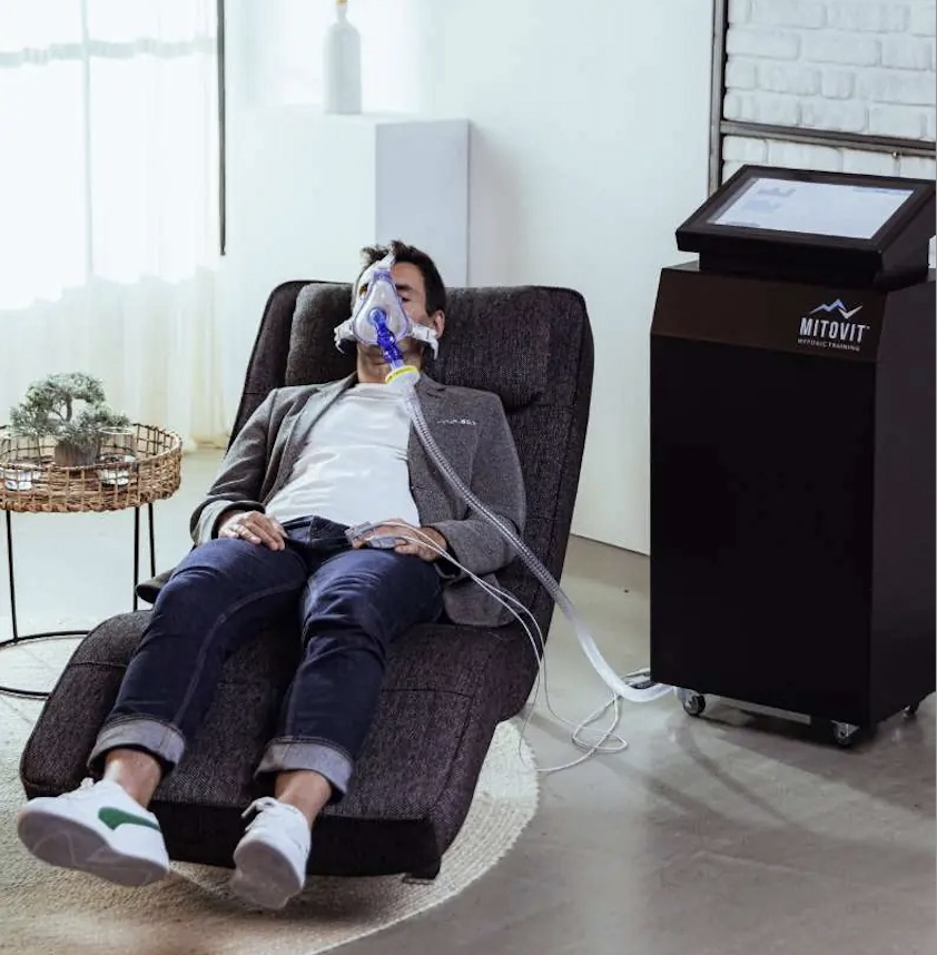 Dabei wird in entspannter Situation abwechselnd sauerstoffarme (hypoxisache) und sauerstoffreiche (hyperoxische) Luft eingeatmet. Durch diese Intervalle werden die geschädigten, müden Mitochondrien gezielt abgebaut und neue, gesunde und aktive Mitochondrien gebildet. Gleichzeitig erhöht sich durch die verbesserte Sauerstoffverwertung die produzierte ATP-Menge. Meßbare Erfolge für körperliche und geistige Gesundheit entstehen bereits nach wenigen Wochen des Zelltrainings.